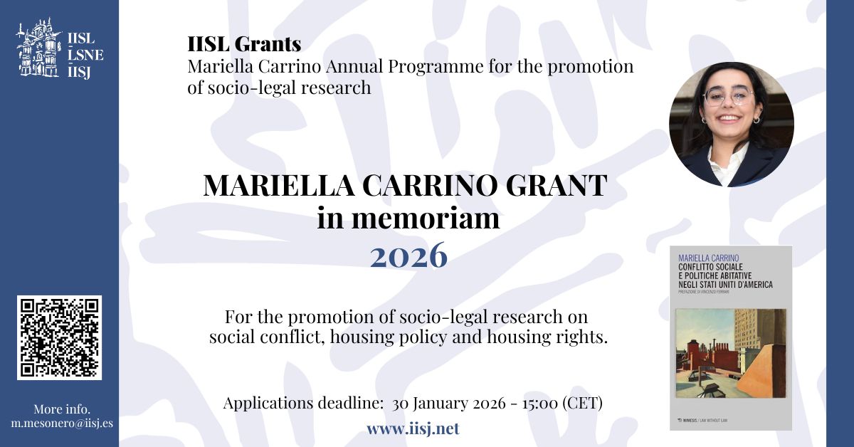 The International Institute for the Sociology of Law of Oñati (IISL) and the Carrino family have created the “Mariella Carrino Annual Program for the promotion of socio-legal research”.