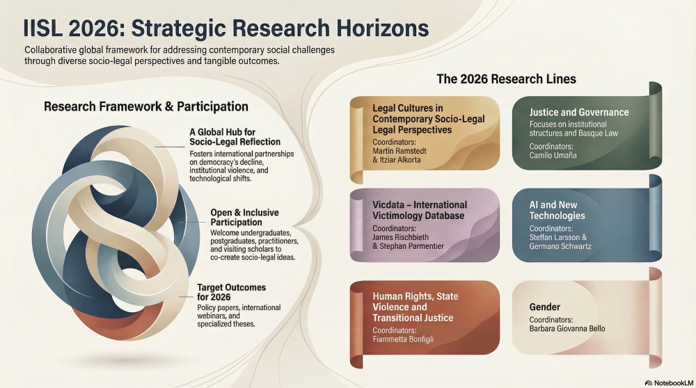 The research lines promote socio-legal reflection, international collaboration and social impact, enhancing global partnerships for collaborative research. The IISL creates this space as a common ground, bridging different perspectives in socio-legal studies, serving as a reference for the worldwide scientific community. If you want to conduct research in the socio-legal field and would like to have the occasion to exchange and co-create ideas with other people around the world, this initiative is for you.